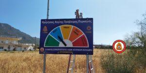 Οι πινακίδες αυτές ενημερώνουν τους πολίτες με απόλυτα κατανοητό τρόπο για τον καθημερινό βαθμό επικινδυνότητας δασικής πυρκαγιάς κατά την περίοδο του καλοκαιριού. Ο βαθμός επικινδυνότητας που αναγράφεται στις πινακίδες αφορά την τρέχουσα ημέρα και ενημερώνεται βάσει των δελτίων επικινδυνότητας που εκδίδει καθημερινά η Γενική Γραμματεία Πολιτικής Προστασίας.