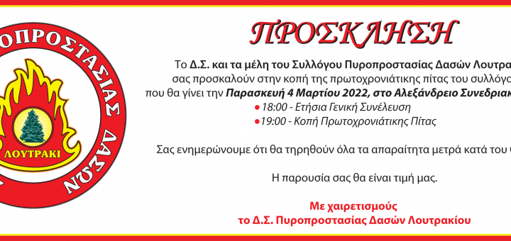 Κοπή της πίτας του Εθελοντικού Συλλόγου Πυροπροστασίας Δασών Λουτρακίου Περαχώρας