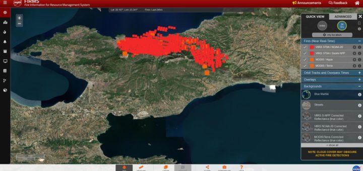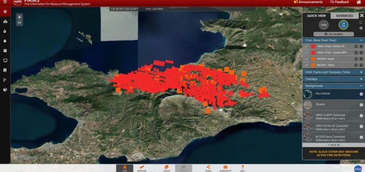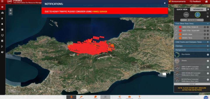 Το σημερινό αποτύπωμα για την Πυρκαγιά στον Σχίνο του Fire Map της NASA μέχρι στιγμής