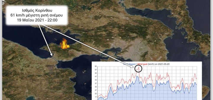 Δασική πυρκαγιά Σχινού, Τετάρτη 19 Μαΐου 2021 Πυρκαγιά εκδηλώθηκε το βράδυ της Τετάρτης 19 Μαΐου 2021 σε δασική περιοχή ανατολικά του Σχινού, στην Κορινθία. Από τις μετρήσεις του δικτύου αυτόματων μετεωρολογικών σταθμών (ΑΜΣ) της Διαβάστε Περισσότερα