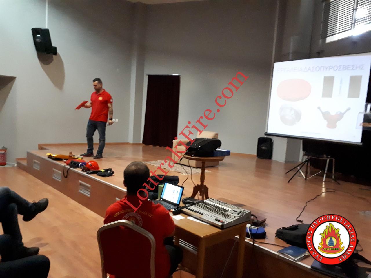 Ο Σύλλογος Πυροπροστασίας Δασών Λουτρακίου – Περαχώρας, το Σαββάτο 18/5/19 στο Πνευματικό κέντρο Περαχώρας, πραγματοποίησε ανοικτή εκπαίδευση – ενημέρωση σε πολίτες και μέλη συλλόγων, με θέμα βασικές αρχές πρόληψης, πυρασφάλειας και αντιμετώπισης δασικών πυρκαγιών .